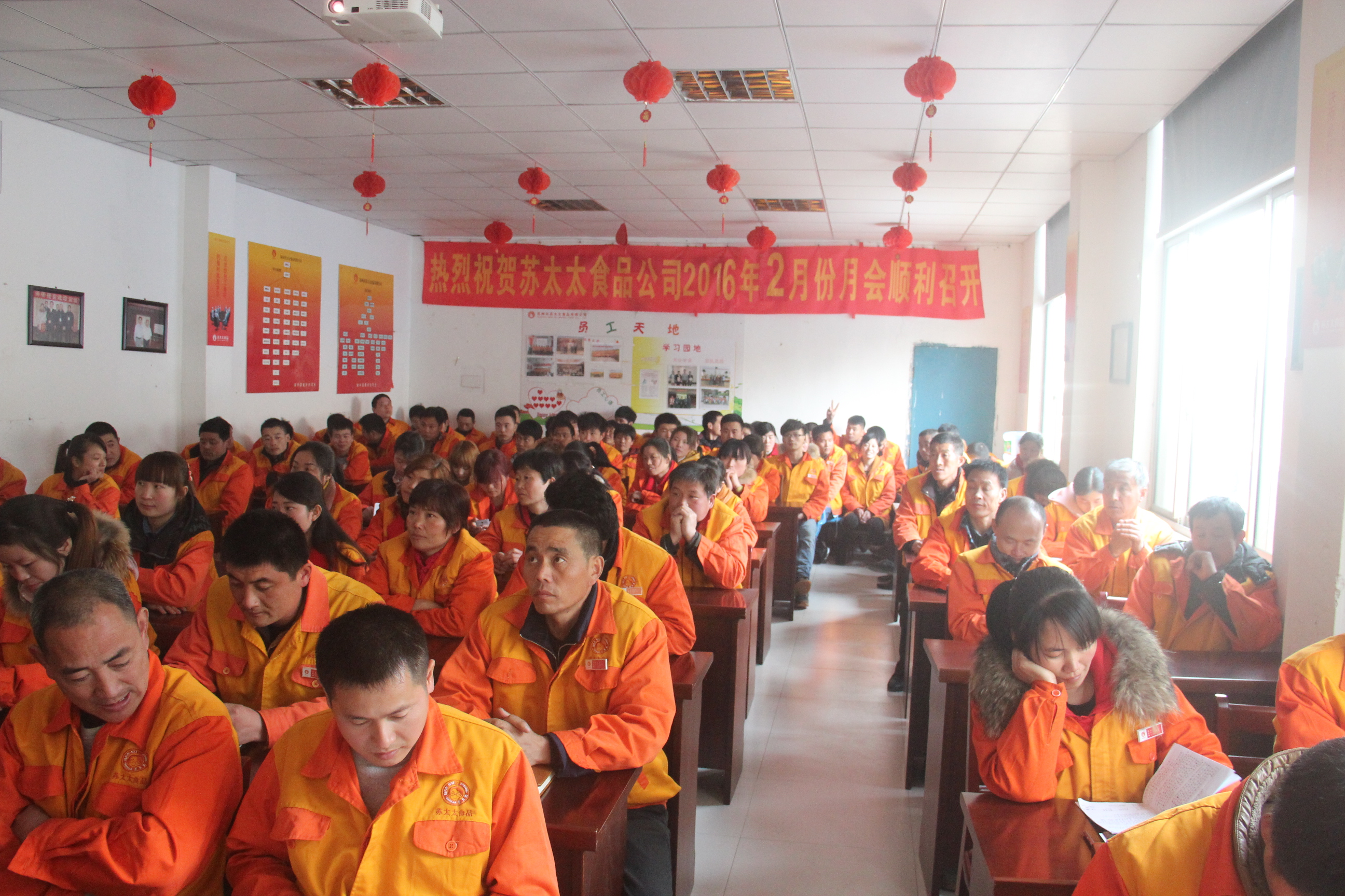 在2月29号 苏州市苏太太食品有限公司召开了2月份的月会,此次会议也是苏太太食品公司的启动大会。各部门主管进行发言,总结2月份工作,展望3月份计划,做计划让工作更好的开展,可以把工作做到更好。